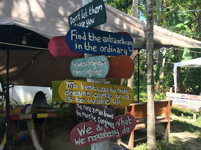 Es wird das „Land des Lächelns“ genannt und das nicht ohne Grund. Aus kleinen holprigen Straßen bestehend, die mit kleinen bunten Lokalen gesäumt und deren Düfte zum Essen einladen und deren Musik zum Tanzen beflügelt, werden wir hier auf der Insel Koh Payam an jeder kleinsten Ecke mit lächelnden Gesichtern willkommen geheißen. Die Menschen dieser Insel machen ihrem Namen alle Ehre. Wir fühlen uns willkommen, wo auch immer wir hingehen. Das Essen ist ein kulinarischer Genuss und für mich das reinste Paradies. Denn jedes zweite Lokal ist rein vegetarisch oder sogar vegan.