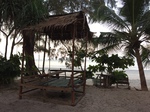 So ist auch unsere Unterkunft auf dieser wunderschönen Insel vielleicht auf den ersten Blick nicht ganz perfekt. Jedoch traumhaft. So bewohnen wir hier eine kleine Holzhütte, die vollkommen spartanisch eingerichtet ist. Bestehend aus einem Bett, das durch ein Moskitonetz geschützt ist, und einem angrenzenden „Badezimmer“, das lediglich durch einen mit Kindermotiven bedruckten Duschvorhang zum eigentlichen Schlafraum abgetrennt wird. Besagtes „Bad“ besteht hier aus einem kleinen Waschbecken mit zerkratztem und beschmierten Spiegel, einem etwas undichten Duschkopf mitten im Raum, sowie einer Toilette. Wo wir einst eine Klospülung vermuten, befindet sich hier nun ein Eimer gefüllt mit Wasser, mit welchem wir den Inhalt dieser Toilette nach Benutzung nun selbst herunter befördern müssen.