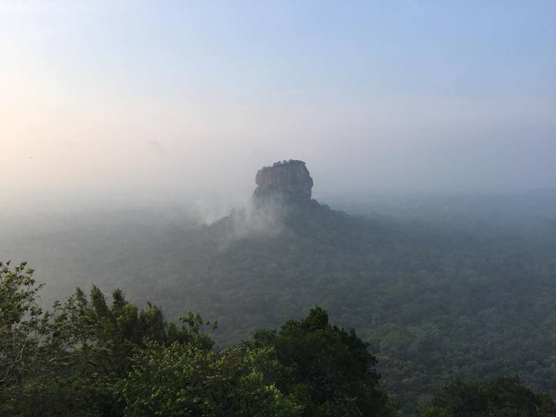 Der Fels, der sich nur schemenhaft vor uns erstreckt, als wir oben nach etwa einer halben Stunde ankommen, hat etwas Mystisches. Es ist still und wir hören nur das ein oder andere Zirpen der Zikaden, hier und da ein leises Rascheln und das Rauschen des Windes. Es vergehen einige Minuten, bis die Dämmerung langsam schwindet, der Nebel der Grünfläche, die sich um den Fels herum ergibt, entweicht und die Sonne sich mehr und mehr am Horizont bewegt. Aus einem Schatten wird nun ein wirkliches Bild und für alle die gerne Träumen - der perfekte Ort dafür. Wie kann etwas so Schönes so einfach und so natürlich sein. Eine Aussicht, wie gemalt, und eine Ruhe voller Frieden. Sigiriya Rock, eines der high lights unserer bisherigen Reise.