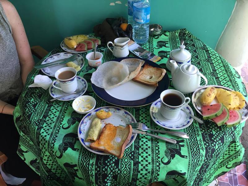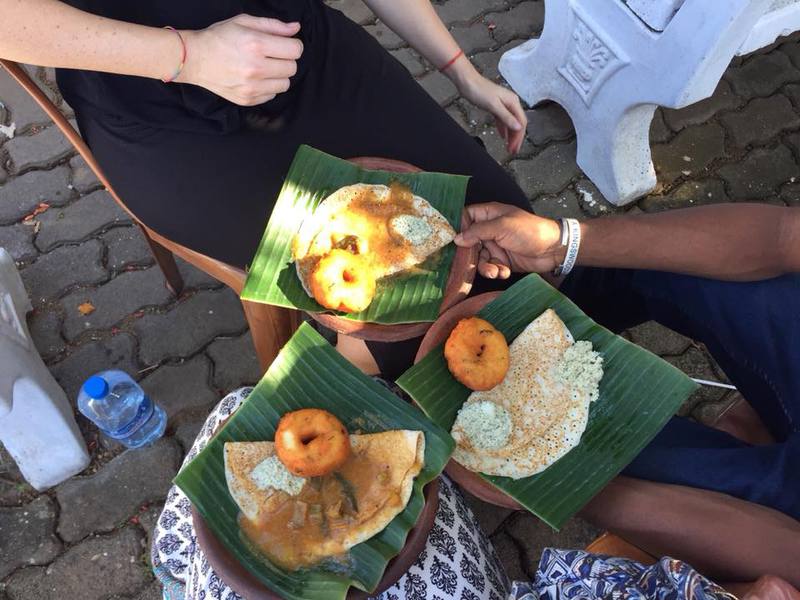 Wir bestellen Reis und ein traditionelles Gericht; hauchdünnes Weizenbrot in Form einer Schale, die mit einem Spiegelei und Gewürzen gefüllt ist, umgangssprachlich „egg hopper“ genannt und ein absolutes kulinarisches high light.