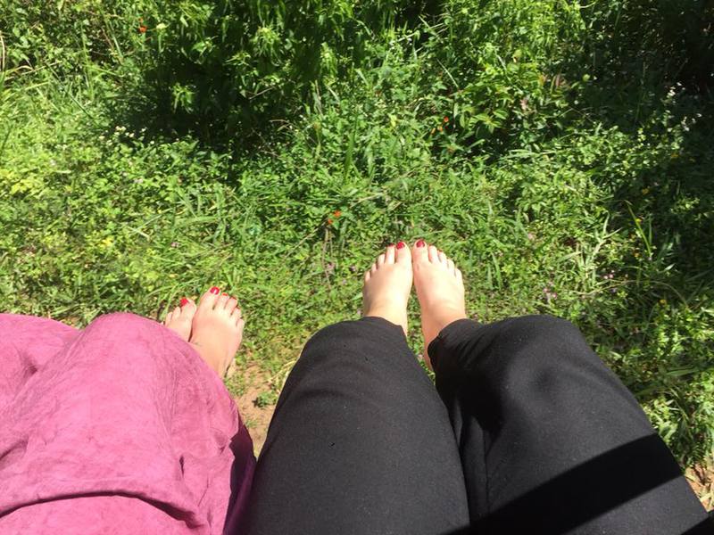 Köpfe und Füsse all der anderen Mitreisenden, die es uns gleich tun.