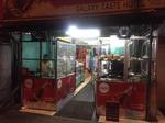 Ein durch Gitter geschütztes Geschäft, hinter dem die Verkäufer durch kleine Öffnungen die Bestellungen der ausschließlich männlichen Kunden entgegen nehmen.