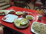 Während wir derweil unsere Mahlzeit wie gewohnt mit der Gabel zu uns nehmen, fällt uns auf, dass die Herrschaften hier mit den bloßen Händen essen. Um dies auf hygienische Art und Weise zu tun, steht auf jedem Tisch eine kleine Schale und eine dazugehörige Kanne mit Wasser. Der Rhythmus hierbei: Hände mit Wasser begießen, Essen. Hände erneut mit Wasser begießen, Essen. Und so weiter, bis das Gericht aufgegessen und die Hände und der Mund mit Papiertüchern abgetrocknet werden.