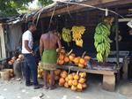 Wir machen kurze Zwischenstopps bei einer kleinen zahnlosen Frau, die uns ihren frisch gekochten Mais serviert und an Obstständen, an denen wir die süßliche Milch orangefarbener Kokosnüsse