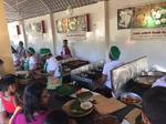Unser Abendessen nehmen wir in einem einheimischen Lokal zu uns, das aus einer überdachten Theke und dahinter kochenden Frauen besteht, die uns alle neugierig begutachten, als wir uns das wohl