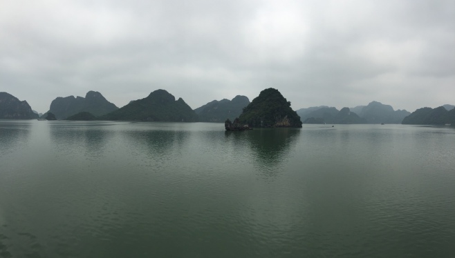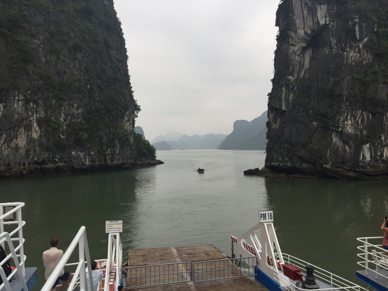 Trotz des Dunstes und des Nebels, der über der Bucht liegt wie ein grauer Schleier, erstreckt sich uns ein faszinierendes Bild. Aus dem Wasser herausragende massive Felswände, die in den Himmel schauen. Das zum Weltkulturerbe ernannte Naturschauspiel liegt dort wie ein Bilderbuch vor unseren Augen.
