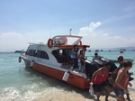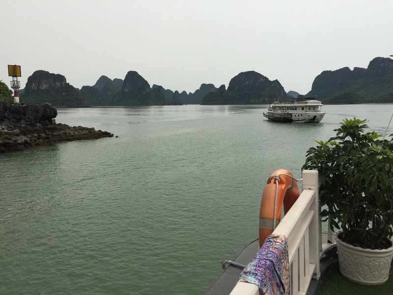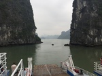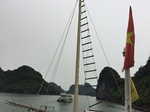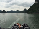 Am Hafen angekommen verkündet unser Guide uns dann die Hiobs Botschaft, die da lautet, dass die geplante Tour von zwei Tagen inklusive einer Nacht auf einem Boot inmitten der Bucht, wegen schlechten Wetters und einer Sturmwarnung abgesagt werden müsse. Als Alternative wird uns angeboten die Insel Cát Bà anzusteuern und die Nacht vor Ort zu verbringen. Anstelle eines Boots besteigen wir nun eine frisch gestrichene Fähre, die uns mit einigen Bikern, Pkw's und den restlichen Touristen vom Hafen direkt zur Insel befördert.