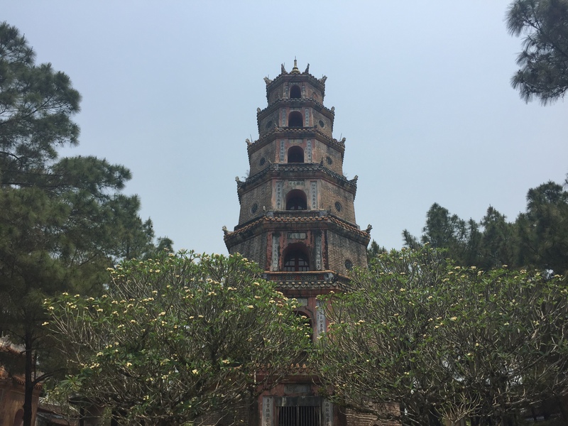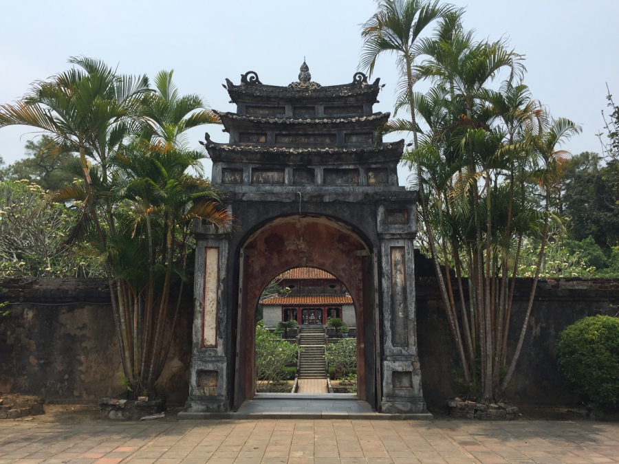 Atemlos durch die Nacht. So würde Helene Fischer unsere Busfahrt nach Hué betiteln und leise im Hintergrund summen. Denn liegt uns die gesamte Fahrt über, die mit geplanten dreizehn Stunden nicht wirklich kurzweilig ist, ein aufdringlicher Uringeruch in der Nase. Die zweistöckigen Schlafplätze, die an eine Jugendherberge erinnern, sind an sich relativ bequem, doch verhindert dort jeder Toilettengang eines Passagiers beim Öffnen der Klotür unseren Schlaf. Entsprechend müde und etwas geistesabwesend kommen wir fast drei Stunden früher als geplant morgens früh in Hué an. Beladen und bepackt mit unserem Gepäck, das tendenziell eher schwerer statt leichter wird, orientieren wir uns den Straßennamen entlang durch die deutlich ruhiger und gelassener wirkende neue Stadt, bis wir unser Hotel, das in einer kleinen Seitengasse liegt, erreichen und dort überaus freundlich empfangen werden. Nachdem wir uns kurz aufgefrischt, mit einem Frühstück gestärkt und uns sowohl geruchstechnisch als auch Wetter bezogen akklimatisiert haben, machen wir uns auf den Weg in eine kleine Zeitreise vietnamesischer Geschichte.