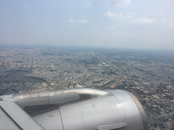 Es ist 14:20 Uhr und unsere Maschine hebt leicht wie eine Feder gen Himmel ab. Die Leichtigkeit der Vietnamesin neben uns mehr oder minder schwerfällig, so schien ihr nervöses Verhalten doch eher geprägt zu sein von minimaler Flugangst kompensiert mit dem Drang, diese nicht zu zeigen. Mit hibbeligen Kopfbewegungen, einem verzerrten Dauergrinsen und leisen Selbstgesprächen überlebte sie jedoch, wie alle anderen Passagiere, uns mitinbegriffen, auch den etwa zwei stündigen Flug.