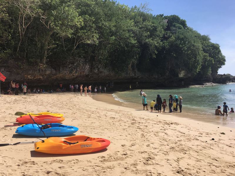 Der Überschuss an Souvenirläden führt nicht unbedingt minder dazu, unser Budget und die Kapazität unseres Reisegepäcks bis auf den kleinsten Rupiah und Kubikzentimeter zu sprengen. Und irgendwie schafft es hierbei jedes Mal der Teufel auf unserer Schulter dem Finanzengelchen eines mit dem Surfbrett überzuwischen, bis dieses wieder zur Besinnung kommt, und der Laden bereits leer gekauft ist.