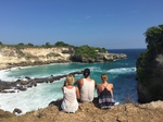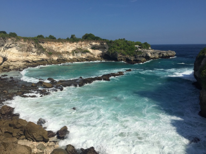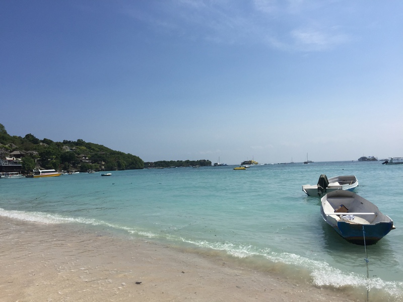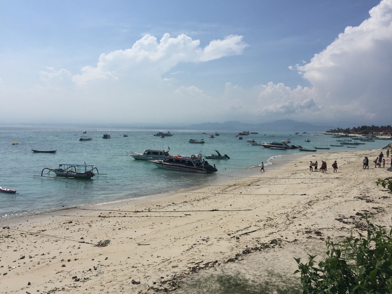 Fernab von alledem zieht es uns nun von der Insel Bali auf die Nachbarinsel Nusa Lembongan, die wir binnen dreißig Minuten via Schnellboot erreichen. Ganz nah und doch so weit entfernt von wilden brechenden Wellen und leicht hektischem Treiben, erreichen wir einen Ort der Ruhe, weissen Sandes und karibisch blauen Wassers. Und weil man sich doch sonst nichts gönnt - neben bunt bestickten Strandkleidchen, Schuhen und Bikinis - gönnen wir uns hier diesmal ein kleines niedliches Bungalow direkt am Wasser. Bei der bisherigen Durchschnittspauschale von etwa 7-10€ die Nacht, kommen uns 17€ hier schon fast utopisch und teuer vor. Und dennoch bekommen wir eine Hütte inklusive Hängematte, einer Dusche unter freiem Himmel, das Rauschen des Meeres, das Brechen der Wellen direkt neben unseren Köpfen, und einem Bett für drei Personen, welches wir uns auf etwa gefühlt zehn Quadratmetern Fläche teilen. Nach einer etwas zu kurzen Nacht, die wir gefühlt auf der sinkenden Titanic verbracht und mit einem Sägewerk neben uns eingeschlafen sind, hat sich jedoch durchaus gelohnt. Nachdem wir am nächsten Tag mit einem kleinen Fischerboot die Insel umfahren und schließlich eine Bucht erreichen, die das Zu Hause mehrerer Manta Rochen umfasst. Das Meer, das wir bis dahin hinter uns lassen, ist im Gegensatz zu den etwa fünf Meter langen Tieren ganz und gar nicht ruhig. So führt die ein oder andere Welle dazu, dass unserer Reisekompanin kurz einmal etwas übel wird. Mit einem Gedankenkarussell, das sich mehr darum dreht, nicht über Bord zu kotzen, kommen wir schließlich unversehrt am sogenannten Manta Point an. Während wir uns in eine andere Welt down under der, die wir bisher kennen lernen durften, bewegen und die friedliche entspannte Atmosphäre der daherschwebenden Mantarochen erleben, hängt unsere Freundin derweil spuckend mit dem Kopf über Bord, und unser Kapitän sich lediglich über diese Situation belustigt.