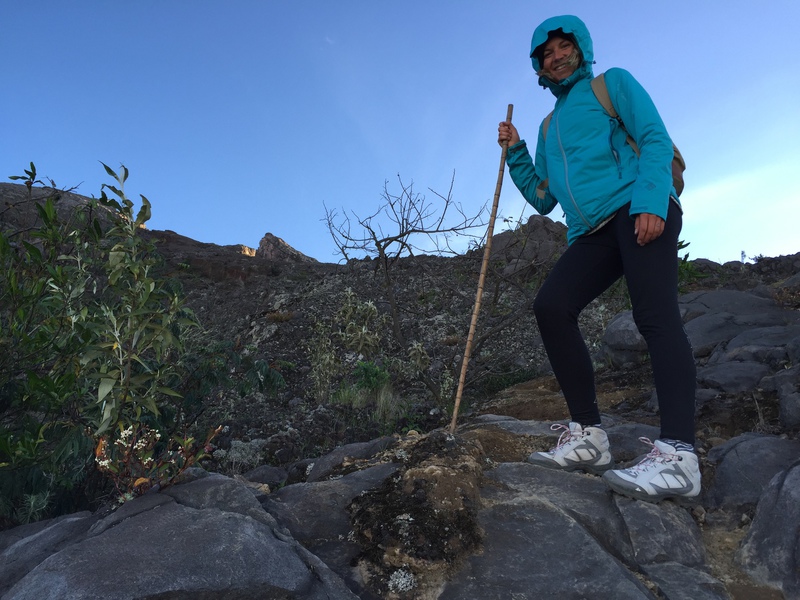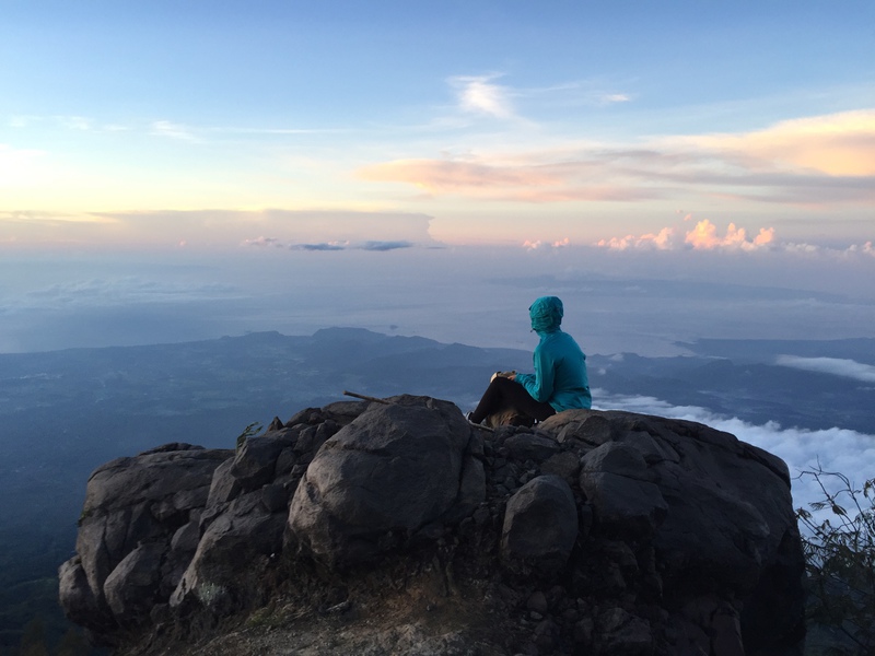 Vier Stunden, drei Liter Wasser, vier Bananen und diverse Süßigkeiten später erreichen wir die Bergspitze. Da wir etwa knapp zwei Stunden zu früh dran sind, bevor der versprochene Sonnenaufgang beginnt, beschließen wir uns noch etwas auszuruhen oder sogar zu schlafen. Der Gedanke behagt mir absolut, wird aber minimal von dem eisigen Wind weggeweht, der mir sämtliche Körperteile einzufrieren droht, trotz schichtenweise Pullover und Thermounterwäsche. Der Blick in den wohl sternenreichsten Himmel lässt die eisigen Gedanken jedoch schnell verschwinden. Der Anblick dunkler Umrisse und einer glitzernden Stadt etwa 3000 Meter unter uns ist selbst für mich in Worten nicht zu beschreiben. Mit dem Rücken an einen Stein gelehnt genieße ich den Moment und fühle mich Verbunden mit der Natur wie noch nie.