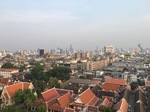 So werden wir vorgefahren - vor besagtem fünf Sterne Schuppen - in einem Tuk Tuk. Ganz wie es die Etikette verlangt und wie es natürlich alle machen würden. Wo andere sich vorher Stunden lang frisch gemacht ihr kleines Schwarzes ausgekramt und die 10 Zentimeter Absätze mit entsprechend aufreizendem Make Up aufgetragen haben, steigen wir aus unserer Luxuslimo auf drei Rädern in unseren am Straßenrand gekauften Wickelröcken und Flipflops aus. Wie heißt es so schön? Kleider machen Leute? In unserem Fall diesmal eher nicht. Denn so werden wir kurz vor den Aufzügen freundlich darauf hingewiesen, dass unser Dresscode nicht unbedingt dem der Masse entspricht. Nachdem meine Freundin sich extra die Haare hat waschen und föhnen lassen um zu mindest einigermaßen die Spuren eines durchgeschwitzten Sightseeingtages zu verwischen, sind wir entsprechend frustriert, als wir nun zurückgewiesen werden. Um den Sonnenuntergang pünktlich zu sehen bleibt nicht mehr viel Zeit und so versuchen wir panisch noch passendes Schuhwerk zu finden, damit wir die hoch angepriesene Dachterasse betreten dürfen - vergebens.