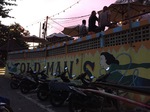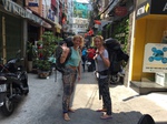 So quetschen wir uns durch die Massenansammlungen, während wir glauben inzwischen relativ siegessicher und geübt im Überqueren einer vietnamesischen Straße zu sein, doch ist dies nun absolut schier unmöglich. Das Risiko, das vorher darin bestand überfahren zu werden, während ein Pulk von Zweirädern auf uns zugerast kommt, ist nun vielmehr dieses, in der Masse zwischen Mopeds und Menschen stecken zu bleiben. So gelingt es uns eher schwerfällig den Rückweg anzutreten. Wenn die Straße als Fluchtweg nämlich nicht mehr reicht, wird kurzum auch der Bürgersteig zur Fahrbahn umfunktioniert. Und so balancieren wir uns vorbei an einem Pulk von Zweirädern, Menschen, freilaufenden Hunden, Ratten und Kakerlaken, während wir aus einer Bar Celine Dions Song "my heart will go on" in Techno Version wahrnehmen. - die Titanic wäre bei dieser Version auch ohne Eisberg schlichtweg gesunken.