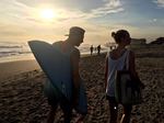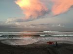 Seine rauschenden Wellen, die sich hoch und bedrohlich auftürmen und uns wieder einmal der ein oder anderen Bikinihose entledigen, lächelt uns an diesem Morgen an und begrüßt uns mit brodelndem weißen Schaum am Rande des heißen klebrigen Vulkansandes. Unsere Verabredung mit dem Meer dauert so den ganzen Tag. Wir beobachten Surfer, die sich den wuchtigen Wassermassen zu stellen versuchen und Schwimmer, die beim Aufprall der Wellen zu tauchen beginnen, fangen die Sonnenstrahlen über uns auf, bevor wir uns mehr oder weniger "frisch" machen für eine der heiß begehrten Strandpartys Canggu's. Nachdem wir die happy hour beim Abendessen mit Cocktails und Wein gut ausgekostet haben, fahren wir mit Salz auf Haut und Haaren, Sand unter und auf den Füßen inklusive Leuchtturm von Gesicht so wie wir sind zum hier bekannten Old Men's, einem Ort, der nur aus den hübschesten und attraktivsten Menschen der Welt zu bestehen scheint. Doch bevor wir uns deren Anblick hingeben und anfangen können zu sabbern, halten wir an einem Automaten, um das nötige Kleingeld für ausreichend Flüssigkeitszufuhr abzuheben.